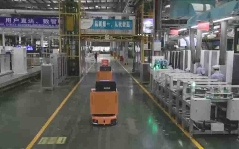 为车载冰箱物流配送打造的智能解决方案,,,包含产中物流通过潜伏举升AMR搬运至线边,,,,产后成品物流智能仓储,,,流程包含产中物流智能齐套入库,,线边安灯叫料AMR智能配送至线边,,成品入库、、出库,,通过无人堆高车机器人,,,智能仓储管理替代人工作业管理,,,实现更高存储、、更高效率、、、更具柔性化的解决方案。。