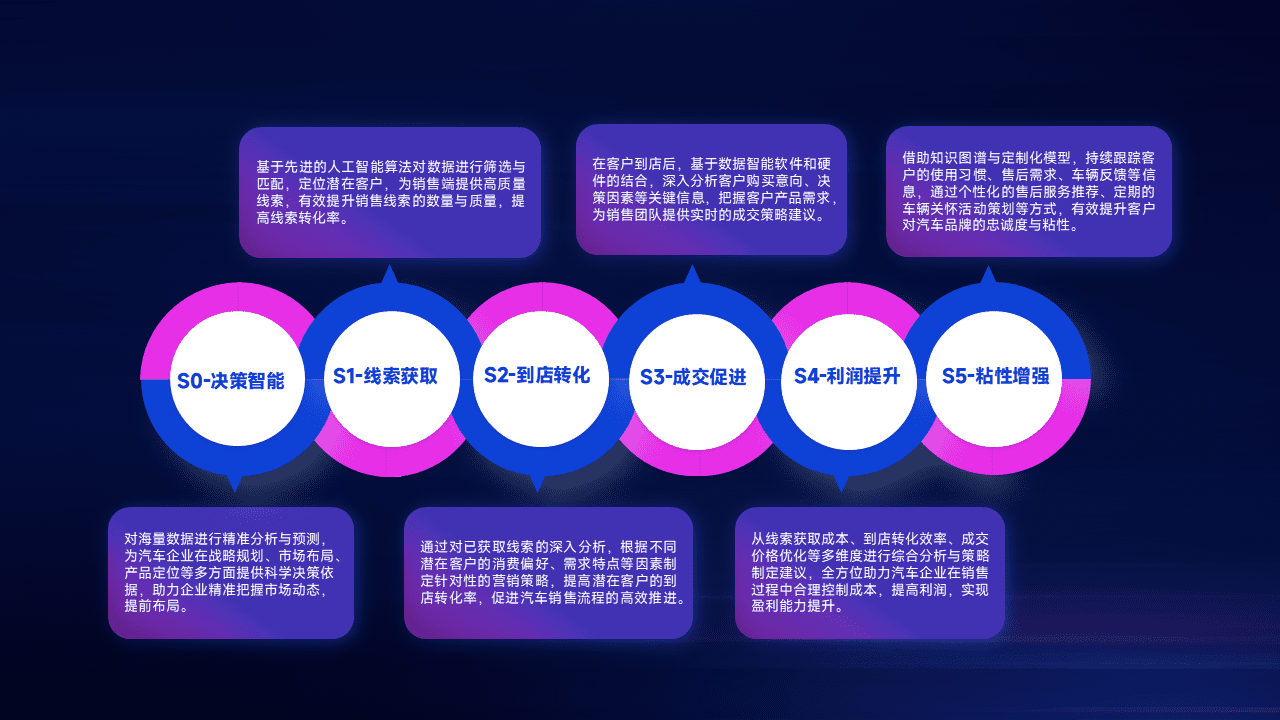 通过拓宽潜在客户来源、、优化线索分配并提高到店转化率,,以增强销售效率。。。。同时,,,,利用线索数据不断优化分析模型,,,有效提升转化率,,扩大营销影响力。。。。